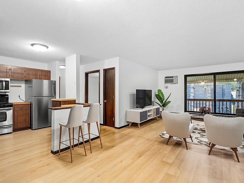 Welcome to this charming 1-bedroom, 1-bath condo nestled in the heart of St. Anthony. This second floor residence features an open and airy layout, highlighted by a private walk-out deck. Recent renovations of this move-in ready home include new paint on all walls and ceilings, new carpeting, new kitchen appliances, updated light fixtures, and a new bathroom faucet. Outside, relax at the nearby pond with picnic tables, benches, and a newly landscaped recreational area. With its prime location, you're just minutes away from the vibrant St. Anthony Main area, offering an array of shops, restaurants, and scenic walking paths along the Mississippi River. Don't miss this opportunity to call this charming St. Anthony condo home!