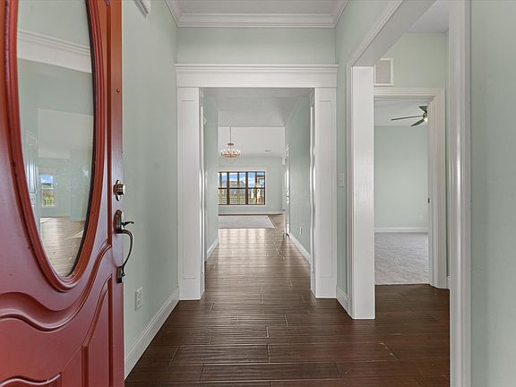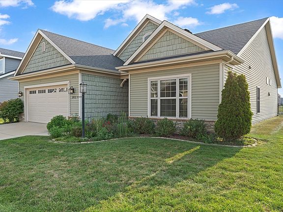 This beautifully designed 3-bedroom ranch offers comfortable, open-concept living with thoughtful details throughout. The spacious living room features vaulted ceilings, a cozy fireplace flanked by built-in shelving, and flows seamlessly into the dining area and kitchen-perfect for entertaining. The kitchen boasts a large walk-in pantry and plenty of workspace for the home chef. The primary suite is a true retreat with a tile shower, double vanity, and generous walk-in closet. A convenient drop zone enhances the functionality of the laundry room. Step out to the screened porch overlooking the fenced backyard and enjoy serene lake views in a private, peaceful setting.