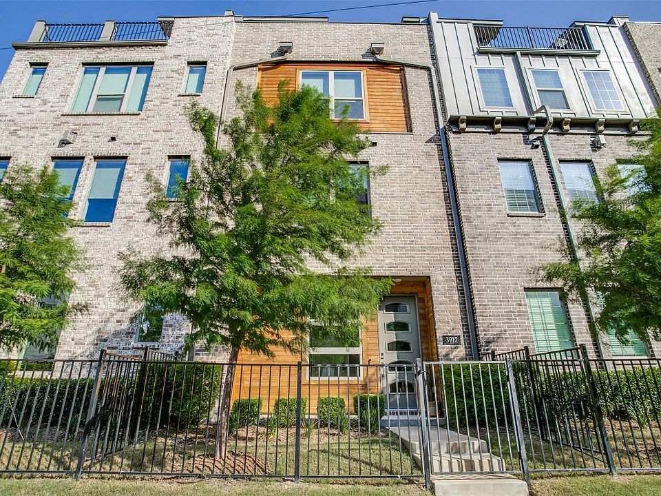Stylish and modern brownstone-inspired 4-story townhome with gated front yard and rooftop deck. Located in Old East Dallas, walking distance to restaurants, shopping and coffee shops. Minutes drive to Deep Ellum, Downtown, Uptown, Lower Greenville, and Baylor Hospital. Custom shades throughout, smart home ready, wired for electric car charger, and accent walls added to owner’s suite, 2nd bedroom, and powder room. Bright entryway features mud bench and spacious coat closet. 2nd level with living-dining featuring hardwood flooring, gas fireplace with stone surround, chef's kitchen with ss appliances, quartz counters, abundant cabinets, glass tile backsplash, and wine cooler. Floor three has 2nd bedroom with ensuite bath and owner's suite complete with double vanity, walk in closet and extended shower. 4th floor features flex space, sprawling rooftop deck with lighting, and storage closet. Entertain friends on your rooftop overlooking downtown or walk to one of the many spots nearby.