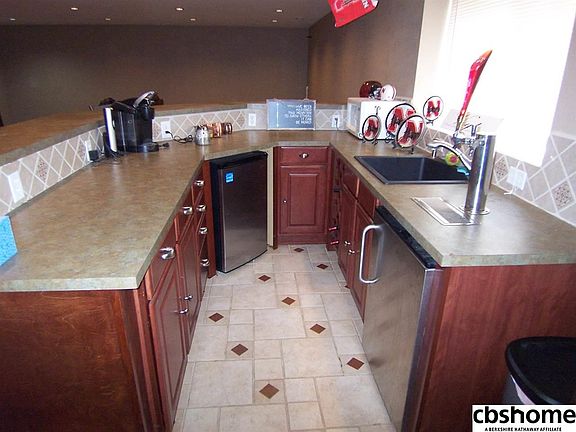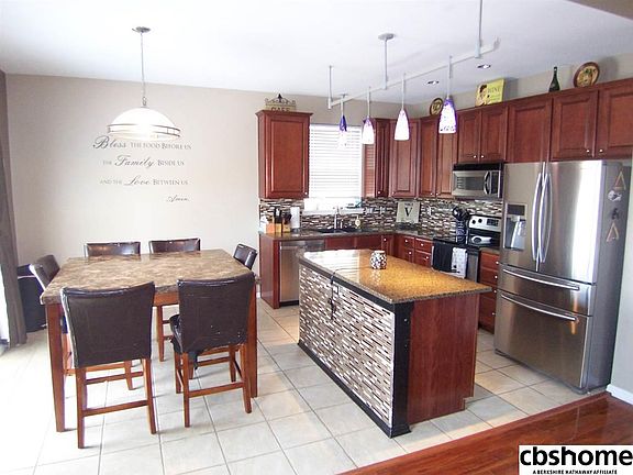 Walk out ranch in popular neighborhood, granite counters, SS appliances, sprinklers, large deck, new walk-in shower, stack stove fireplace, ceramic backsplash, newer roof, AC, double sinks in master, new Pella sliding glass doors main and basement. Commercial like bar in basement.