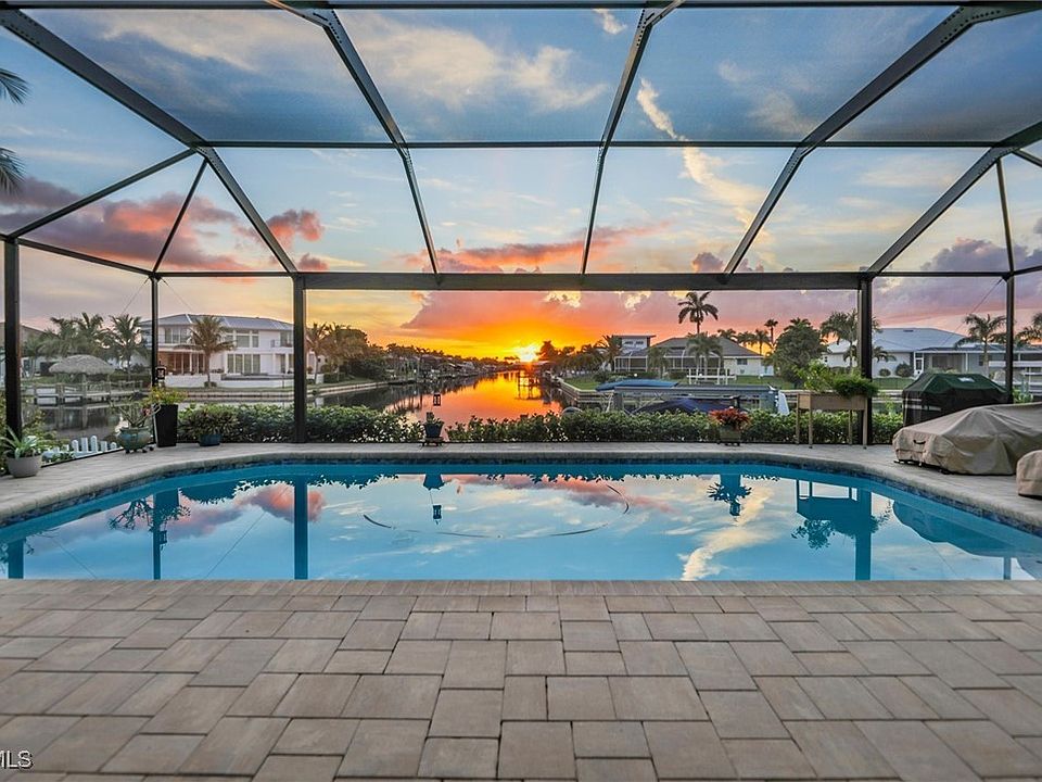 Step outside to your own private resort. The PebbleTec pool glistens like new (2023), framed by a picture-window lanai cage and fresh pavers surrounding the home. Enjoy an outdoor kitchen, hot/cold shower, lush landscaping, and sweeping western sunsets that pour across the water. A private dock with lift grants effortless, direct Gulf access—perfect for boating, fishing, or evening cruises. Offered partially furnished and loaded with premium upgrades, this exceptional home delivers beauty, function, and a lifestyle that truly stands apart.