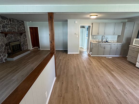 Three-bedroom, one-and-a-half bath home for rent in a quiet Bridgeport neighborhood. The house has been updated with new flooring and fresh paint throughout. The main floor has an open layout with a large living room, a real stone fireplace, and plenty of natural light. The kitchen has solid cabinet space and includes a gas stove, fridge, and microwave.