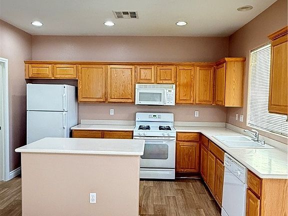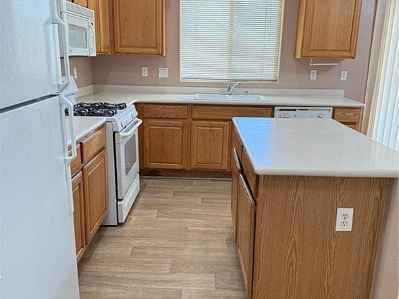 Wonderful 2-Story Home with 3 Bedrooms, 2.5 Bathrooms, and a 2-Car Garage! This beautiful home features new flooring and fresh paint, giving it a bright and modern feel. Upstairs, you'll find a spacious loft perfect for a home office, playroom, or additional living area. The main living area is open and inviting, complete with a ceiling fan/light, while the kitchen boasts an island, all-white appliances, a pantry, and plenty of counter space for cooking and entertaining. The first-floor laundry room comes with a washer and dryer included for added convenience. The master bedroom offers a walk-in closet, ceiling fan/light, and a private balcony overlooking the backyard. The master bathroom includes double sinks and a tub/shower combo. Step outside to the covered patio and enjoy a huge backyard with low-maintenance desert/rock landscaping, perfect for relaxing or entertaining. Tenants should verify all information, including schools.
