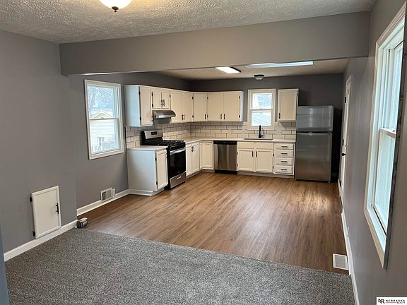 Fully remodeled home for sale in south Omaha. This 2 bed 2 bath home has been completely updated and is move in ready. The main floor features 2 bedrooms, a full bathroom with tiled tub/shower, a spacious living room, and a large kitchen with quartz countertops and brand new stainless steel appliances. The finished lower level features a big rec room, laundry room, and a 3/4 bathroom with tiled shower. All new flooring throughout. Brand new furnace and water heater. Large backyard with 2 car detached garage with alley access. Schedule your showing today!