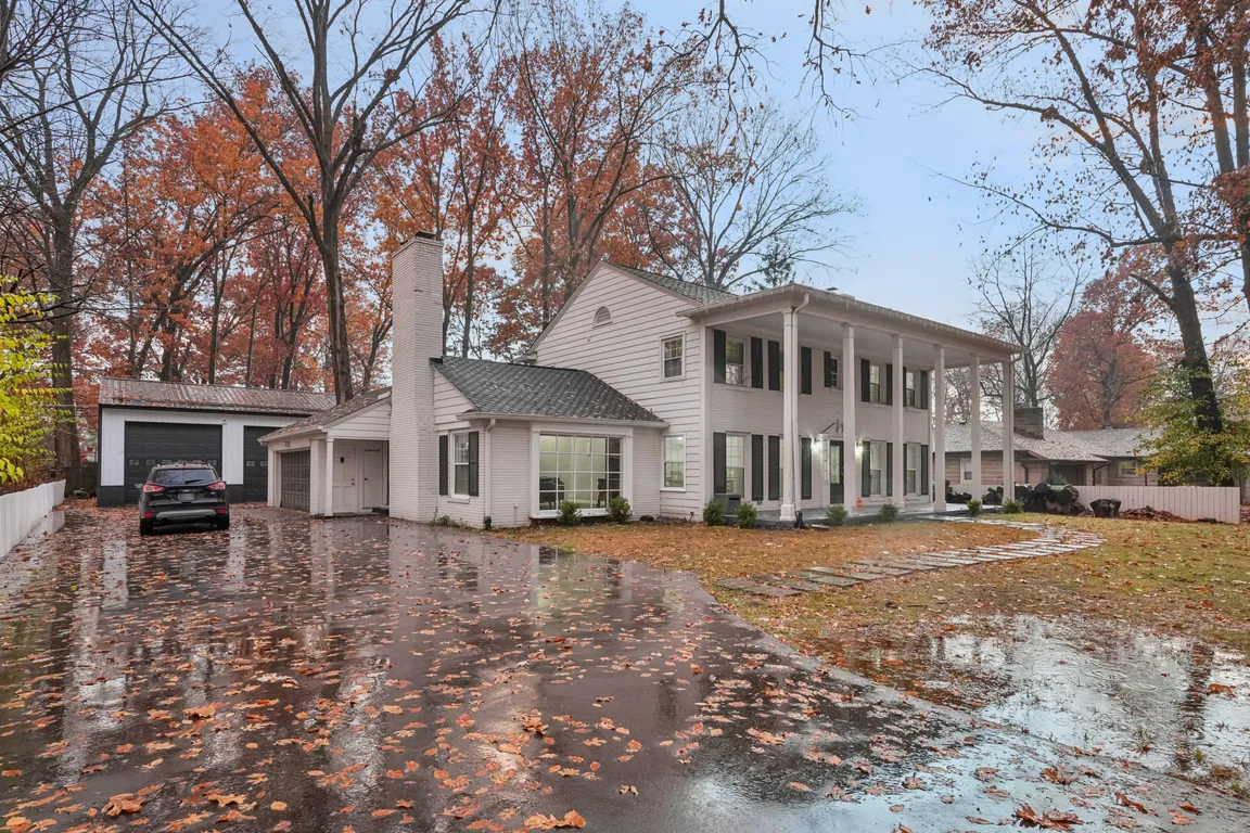 Stunning Executive Colonial with Grand Columns & Epic Detached Garage - Car Lover's Dream on Half an Acre! Timeless curb appeal hits you the second you pull up: classic white brick, black shutters, and those stately full-height columns framing a wide, welcoming front porch that has that classic ...