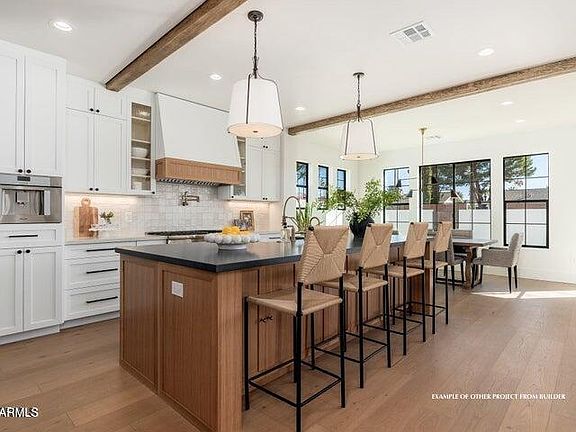 Welcome to this stunning single-level new construction home, ideally located in the prime heart of Arcadia, one of the most sought-after neighborhoods in all of Arizona. This 4-bedroom, 3.5-bathroom masterpiece blends timeless farmhouse charm with luxurious modern finishes—crafted with care for the discerning buyer. Step inside to soaring ceilings, wide-plank hardwood floors, and an open-concept layout designed for effortless living and entertaining. The gourmet kitchen boasts high-end appliances, custom cabinetry, an oversized island, and a walk-in pantry—perfectly positioned to overlook the spacious great room with a cozy fireplace and seamless indoor-outdoor flow. Retreat to the elegant primary suite featuring a spa-inspired bathroom, oversized walk-in closet, and private access to the backyard oasis. Three additional bedrooms include an ensuite and a Jack-and-Jill bath, offering flexibility and privacy for family or guests.