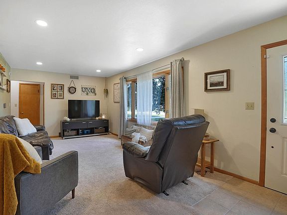 This sweet ranch is situated in an established neighborhood, tucked back off the road and surrounded by mature trees. Stepping into the living room, you'll appreciate the neutral decor and picture window that lets in lots of natural light. The kitchen is a showstopper with new cabinetry, cottage country charm, open shelving and sage green cabinets. It's lovely, inviting and so stylish! Off the kitchen is a large dining area that could also serve as a family room, if needed. Just off the dining area is access to both the garage and the covered backyard patio that is ready for hosting all the get togethers! Back inside, all bedrooms on the main floor are comfortable in size and share the main bath. Heading to the lower level, a recently updated family room is a welcome surprise and is just off the 4th non-conforming bedroom and newly added 3/4 bath. Offering updated mechanicals(furnace 2024)/flooring/fixtures. This home is the whole package!