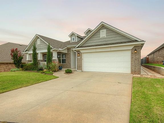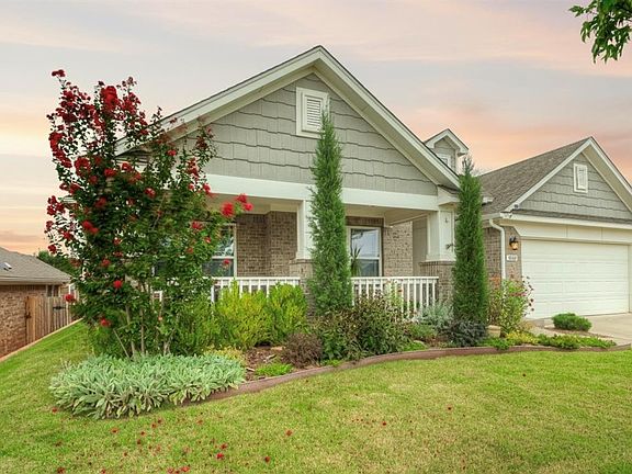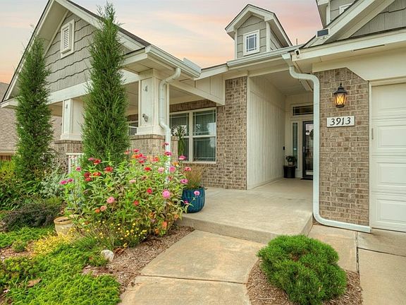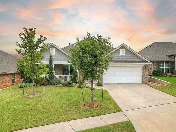 Welcome to this stunning 4-bedroom, 2-bathroom home that truly checks every box. With picture-perfect curb appeal, upgraded landscaping, and a front porch straight out of the movies, this property is as inviting on the outside as it is inside. Step through the upgraded glass storm door and into a bright, open-concept floor plan. The spacious living room features tall ceilings, an abundance of natural light, and a grand tiled fireplace with a wood mantle casing that serves as the heart of the home. The chef’s kitchen is a dream come true with a large island, quartz countertops, plentiful white cabinetry, built-in stainless steel appliances, recently updated dishwasher, and a walk-in pantry. Ceiling fans with remotes have been thoughtfully installed throughout the home for comfort and convenience. The primary suite, tucked privately at the back of the home, is filled with natural light and offers a spa-like retreat. The en-suite bathroom boasts decorative tile floors, dual vanities, a soaking tub, a walk-in shower, and a large wraparound closet. Three additional spacious bedrooms are located at the front of the home, each with generous closets and access to a full bathroom with double vanities. A mud-bench off the laundry room adds practical style. Step outside to your very own outdoor oasis. The extended covered patio offers an impressive 350 sq/ft of outdoor living space with an added 8’ depth and 20’ width, complete with a custom wooden pergola—perfect for entertaining or relaxing. The manicured backyard features upgraded landscaping, stone pathways, a sprinkler system, and an 8’ x 12’ outbuilding for extra storage. Additional upgrades include: Garage with underground storm shelter, insulated garage door, keypad entry, and attic decking for storage. This home has been meticulously maintained and upgraded to provide both beauty and function. Truly move-in ready, this property offers comfort, convenience, and timeless style at every turn.