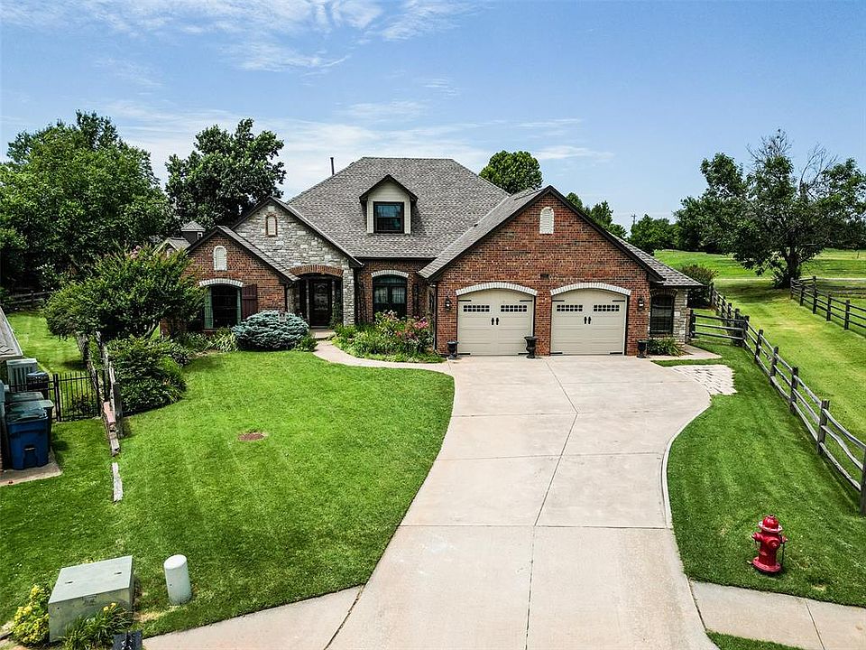 Check out this phenomenal 4 bedroom, 4 and a half bathroom entertainer's home with a sparkling pool and hottub located in a cozy cove in Wild Meadow at Coffee Creek! As you enter, you'll find a welcoming formal dining area to your left, seamlessly flowing into the living room that features a cozy stone fireplace. The kitchen is complete with a charming farmhouse sink, a gas stove, and a walk-in pantry. The primary bedroom is highlighted by floor to ceiling windows that let in natural light and provide easy access to the backyard. The en suite bathroom includes a relaxing jetted tub, dual vanity, and a spacious walk-in closet. In addition to 3 comfortably sized secondary bedrooms, the home includes a study/library, ideal for working from home or enjoying a quiet moment with a good book. The laundry room is thoughtfully designed with a sink and custom storage, making chores more convenient. Head upstairs to discover a private living space, complete with a bedroom, full bath and living area. The garage features an in-ground storm shelter for added peace of mind. Step outside to the fabulous backyard, where you’ll find a covered patio overlooking a sparkling pool with a hot top and waterfall feature, an entertainer's dream! The pool house is equipped with a wet bar, refrigerator, and a bathroom, making it the ultimate entertainment spot. This home truly has it all! Don’t miss your chance to make it your own!