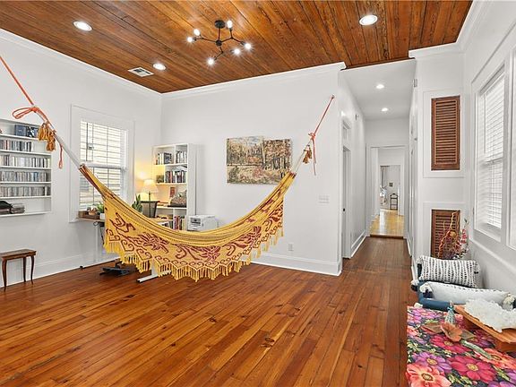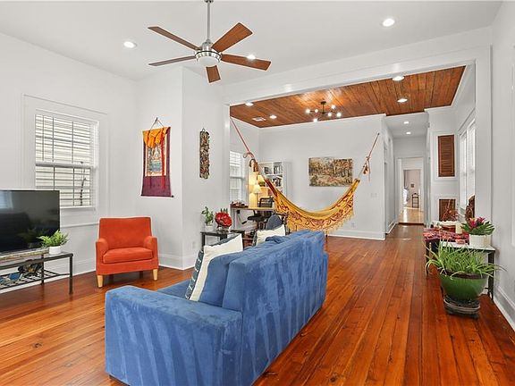 Located on a tree-lined idyllic street this quintessentially New Orleans cottage with off-street parking has 11' foot ceilings, gorgeous refinished hardwood floors, a shady, peaceful front porch, abundant natural light and a newly updated kitchen. A double parlor in the front room can serve as a living area with a formal dining room or office. The breakfast nook off the kitchen is bathed in light from the skylight. The roof is less than 5 years old, and the neighborhood is one of the loveliest--close to quaint restaurants and bars on Magazine and just off the parade route. This home has a laundry room, pantry, and a lot of great closet and storage space. A clawfoot tub in the guest bathroom and floor-to-ceiling windows in the living room add texture to this beautiful home. The front porch is a sweet place to relax or have a cocktail with neighbors. A lovely rock patio and wooden deck off the primary suite add to the serenity of this sweet cottage. Close to Touro, and also Magazine Street restaurants including Baru, Shaya, La Petite Grocery, and Saj. Also close to The Chloe, Columns and streetcar line on Saint Charles. A beautiful cottage in a great location--a unique New Orleans find!