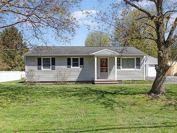 Welcome to easy living in this cheerful ranch home nestled in a peaceful rural community! With its one-story layout and updated mechanicals, this home offers comfort, convenience, and charm. Step inside to find original hardwood floors that add warmth and character to the spacious living room. The eat-in kitchen features classic cabinetry, ample counter space, and newer flooring, perfect for daily living or casual entertaining. The full bath showcases vintage tilework with a retro flair. Enjoy the efficiency of a 2020 water heater and the comfort of a forced air NATURAL GAS furnace with central air (HVAC 2006). The roof and tilt-in vinyl windows are newer, adding to the home's low-maintenance appeal. Public water and sewer, plus a two-car garage and generous yard, round out this move-in ready opportunity. Don’t miss your chance to make this home yours!