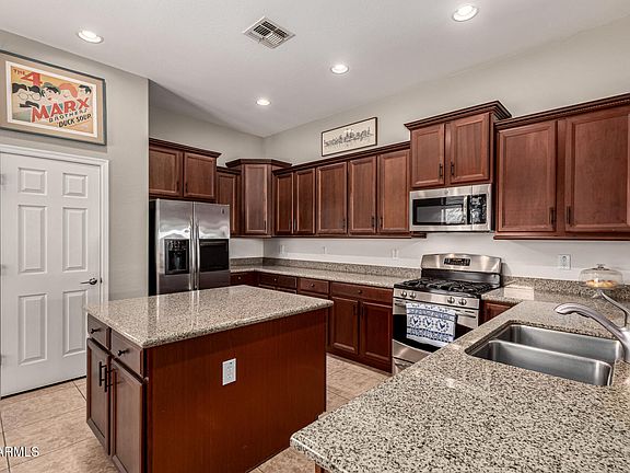 This stunning home offers, 3 bedrooms, 2 baths, 2,258 sq ft. 7346 sq. ft lot, gated community, built in 2008. Home boasts a spacious 4 car garage with epoxy flooring, perfect for storage and projects. Step inside to discover tile and engineered wood flooring throughout, ensuring a low-maintenance living environment-no carpet in sight! Kitchen has lots of cabinets, granite countertops and stainless-steel appliances. Den is on the main level offering a private workspace. Enjoy breathtaking mountain views from the comfort of your home. The charming front porch and soaring 10-ft ceilings add to the property's allure.