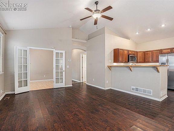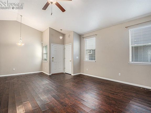 *Effortless one-level living *Beautifully maintained *Located in a sought-after gated community near the Country Club of Colorado *Easy access to Ft. Carson, I25 and Hwy 115. This 3-bedroom, 2-bathroom home offers the perfect blend of comfort, style, and convenience. Step inside to soaring vaulted ceilings, laminate wood flooring and an open layout that feels bright and spacious. The kitchen features stunning butcher block countertops, stainless steel appliances, and a pantry. The separate laundry room, conveniently connected to the attached garage, adds everyday ease. The primary suite includes a private attached bathroom with double sinks and a walk-in closet. The 2 additional bedrooms could also be used for office or exercise space. Enjoy your own low-maintenance, private backyard patio - ideal for relaxing or entertaining. Don't miss out on this charming home!