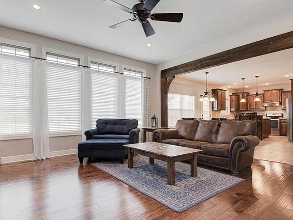 This beautiful 1.5 story home is one you do not want to miss! From the open-concept kitchen and living space to the spacious backyard there is plenty of room for the whole family to enjoy! There are 2 bedrooms on the main floor and 2 additional bedrooms upstairs with a jack-n-jill bathroom. The carpet in bedrooms are less than a year old! The main floor is certainly a focal point with raised ceilings, hardwood flooring, gas fireplace and a custom wood beam welcoming you into the kitchen. Granite counter tops, stainless steal appliances and custom alder cabinets! New kitchen lighting! Covered patio with ceiling fan and stamped concrete right off the kitchen gives an extra space to entertain as well. Springlawn Park Subdivision is family friendly and a short distance away from the highway which makes travel time easier and quicker. Home is also walking distance to the Ozarks Greenway Trail and Truman Elementary School. Like BRAND NEW, come take a look!!