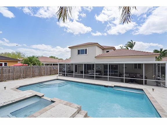 Beautiful home, 4/3 with 3 car garage. Big kitchen with stainless steel appliances, 2 refrigerators Living room, dining and family room and office area. Big size pool, with solar lights around that illuminates at night, covered patio for casual dining. 3 B/R 2 bath, including the Master bedroom with his and hers California closet upstairs. One Bedroom and a remodeled bathroom downstairs, very convenient for guests or in laws. Big backyard with a tropical feel of palm and mature coconut trees. The driveway is massive and can fit 8 to 10 cars. Credit score of 650 or above to qualify. Actual area is 3,486 sq ft. Lot size is 11,193 sq.ft or .26 acre. Biggest lot in the neighborhood. Very safe and quiet neighborhood. Two secured gates to the property and 24 hours security. Clubhouse and gym facilities are nearby. Near Baptist hospital south, turnpike, Homestead air Base.