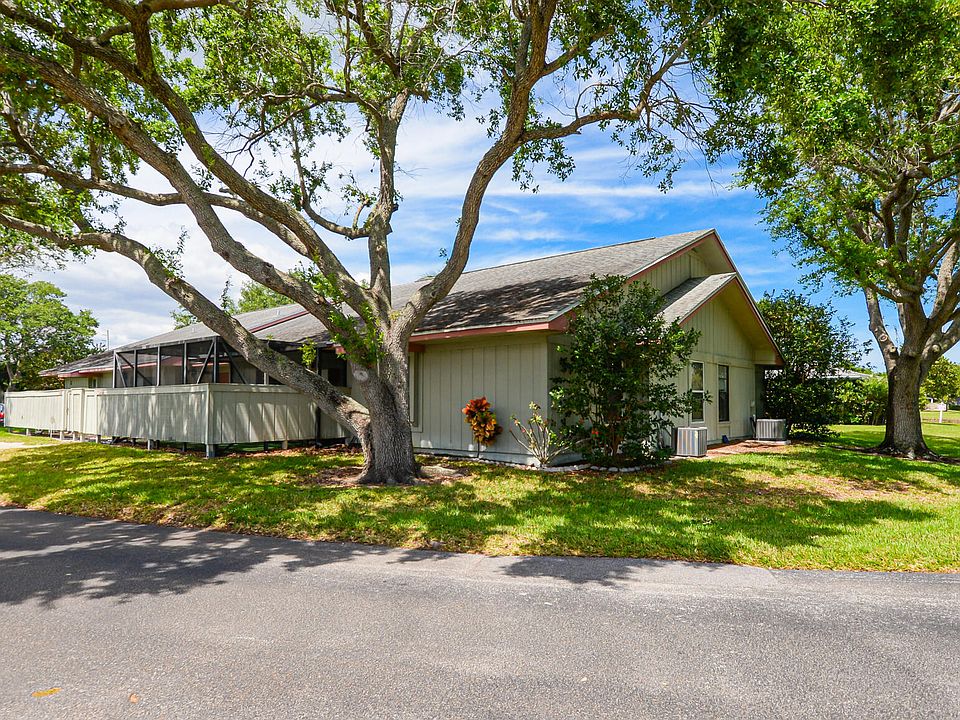 Beautiful corner villa in Cinnamon Tree, Jensen Beach. This 2/2 villa features a screened porch and a community clubhouse with a pool and scenic walking paths. Includes basic cable, internet, water, sewer, and lawn care. New AC installed on 4/22/2024 and freshly painted exterior on 6/20/2024, enhancing its charm and curb appeal.Great location, walking distance to Publix, Wawa, shops, downtown Jensen, dining, and just five minutes to the beach.Don't miss this newly refreshed gem!