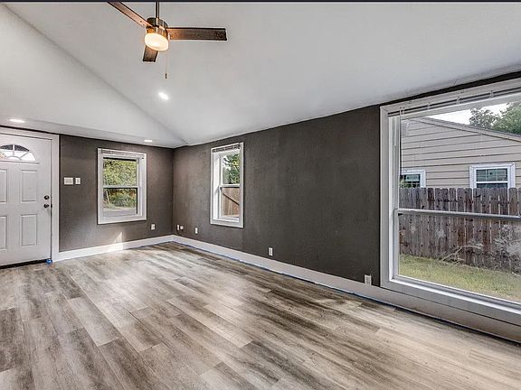 Charming 2 bed, 2 bath home in Dallas, TX, minutes from Parkdale Lake with quick access to major highways. Open-concept layout with vaulted ceiling in living area. Kitchen features stainless steel appliances, double-door refrigerator, electric oven/stovetop, and commercial-grade vent hood. Kitchen opens to dining and living areas. Fenced backyard and 1-car detached garage. Convenient location and move-in ready.