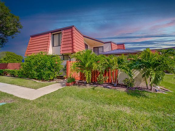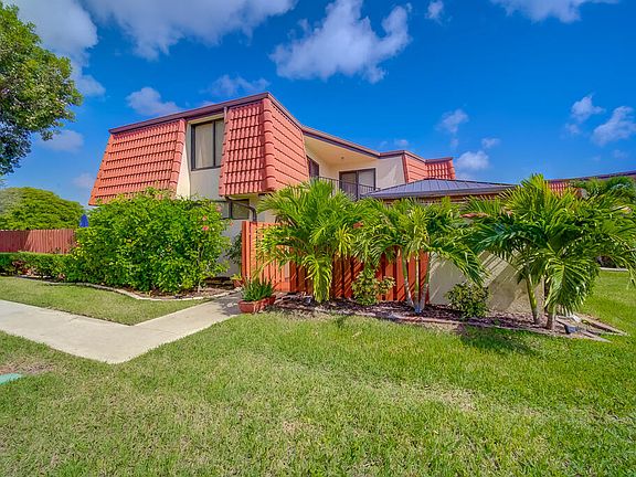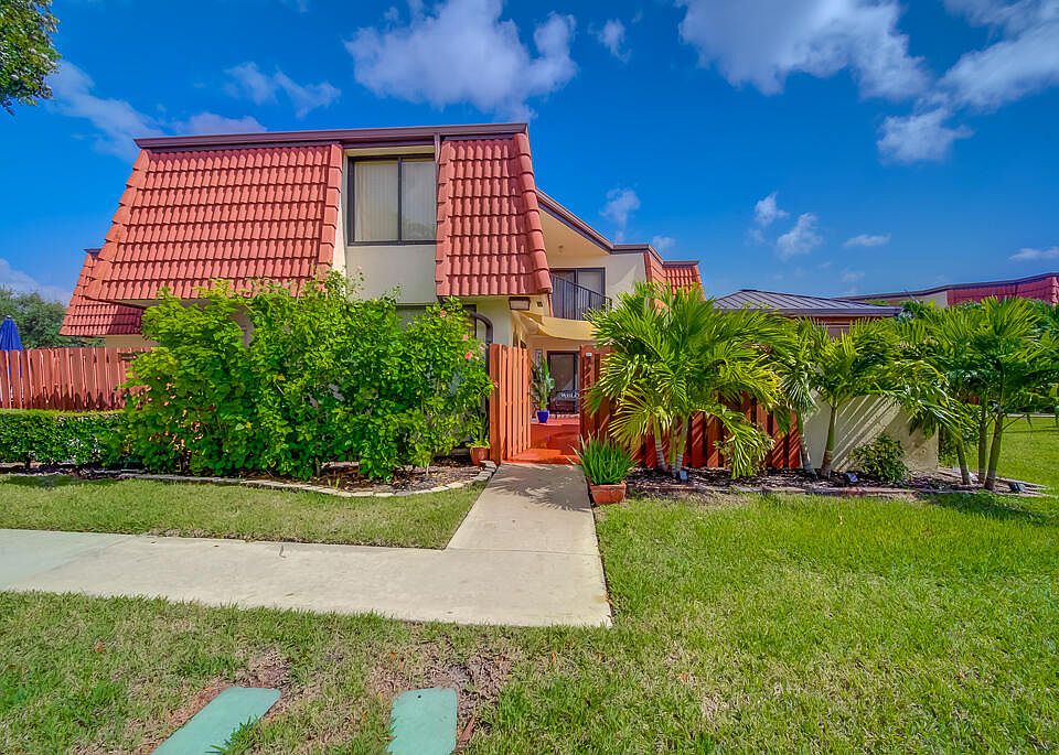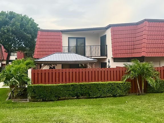 Welcome to this meticulously maintained townhome, featuring 2 bedrooms and 2.5 bathrooms across 1,218 square feet. Conveniently located, it boasts hurricane impact windows and doors, fresh paint, and lots of natural light throughout. The spacious living room flows into a dining area and eat-in kitchen with a snackbar, creating an inviting space for gatherings. Upstairs, both bedrooms offer access to a lovely sitting balcony and ceiling fans. The master suite includes double walk-in closets, an ensuite with double sinks, and a privacy toilet with a shower/tub combo, as well as a laundry chute. The guest bedroom features a full bathroom with a step-in shower. In the downstairs fully updated half bathroom, you will find a new washer and dryer, shelving, and a receiving laundry chute for added convenience. Outdoors, enjoy beautifully landscaped surroundings, a grassy area, and a spacious, freshly painted patio with brand new pavers and a stunning gazebo, complete with lighting, a fan, and shades. This community is ideally situated near I-95, downtown, shopping, restaurants, and schools, and it offers amenities like tennis courts and a pool with lake views. Don't miss this opportunity to make this charming townhome your own... Schedule your showing today!