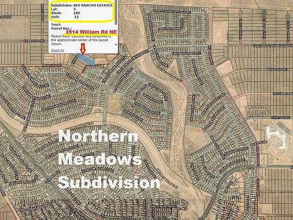 Great large lot .78 Acres touching Northern Meadows Subdivision. T-Z Zoning Possibly Commercial. Utilities in Northern Meadows. Plan your dream home make this lot your investment future. Call Today!! Thank you. GPS is Latitude: 35 19' 20.319''Longitude: -106 43' 18.764''
