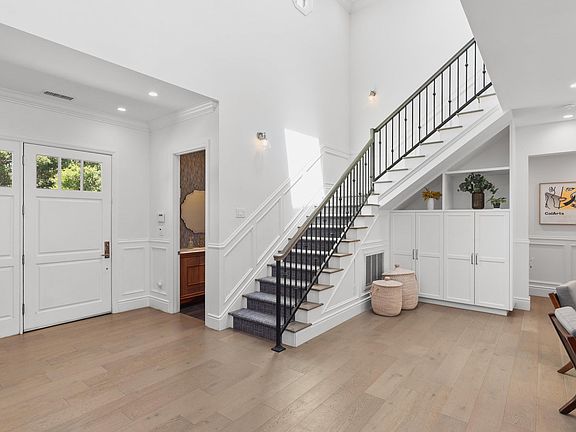 Don't miss this stunning Cape Cod-style residence located in the highly sought-after Royal Woods neighborhood. Nestled in a prime South of the Boulevard location, this light-filled, five-bedroom, six-and-a-half-bath home offers an open floor plan that perfectly suits today's California lifestyle. Completely rebuilt in 2016 with high-end designer finishes, this home was thoughtfully designed with both comfort and entertaining in mind. The spacious family room opens seamlessly to a resort-style backyard and a chef's kitchen equipped with top-tier stainless steel appliances, a large center island, custom cabinetry with abundant storage, and a convenient butler's pantry. The formal dining room features a built-in display cabinet and wine storage, ideal for elegant gatherings. Downstairs also includes a large theater room with wet bar, a full laundry room with sink, and two ensuite bedrooms -- perfect for guests or home office needs. Upstairs, you'll find three additional bedroom suites, including a luxurious primary retreat featuring a private balcony, cozy fireplace, and an expansive spa-like bathroom with dual vanities, a freestanding tub, and a separate glass-enclosed shower. Go outside and enjoy the ultimate private outdoor living experience in the newly renovated backyard with a waterfall, pool, spa, built-in BBQ, and lush grassy area -- ideal for entertaining or relaxing evenings. Additional features include a second-story covered lanai, elegant powder room, hardwood floors, coffered ceilings, wainscoting, crown molding, a smart home system with Nest thermostats, a security system, and a 240V EV charging outlet in the garage. With easy access to the Westside, downtown, major freeways, and all the shopping and dining along Ventura Boulevard, this exceptional home truly has it all.  All of this sits on over 1/4 of an acre in the Sherman Oaks Hills!