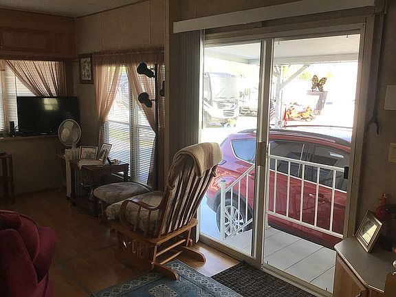 Very cute 42 ft, 2 bedroom 1 bath 2007 Franklin Trailer in real nice small Moble Home Park (Water's Edge) 55 over park. Rare back patio area. Roof sealed 2022. Furnished just bring your toothbrush!! Lot rent is $505/month.