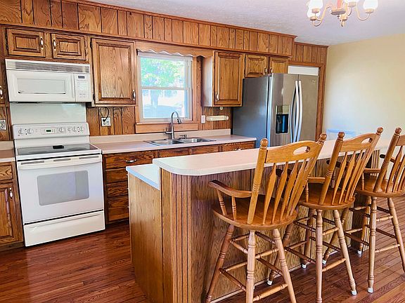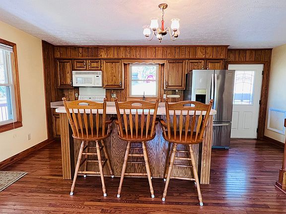 This charming three bedroom, two bathroom home features a stunning wrap around porch, perfect for relaxing and enjoying the tranquility of this property, the open concept kitchen and living room creates a warm inviting space for gatherings. You descend down the unique spiral staircase to the gathering room that boasts it's own fireplace, and additional large bedroom and convenient laundry area. Outside you'll find and outdoor fireplace, ideal for entertaining, along with a workshop and three additional storage buildings, offering plenty of space for hobbies and storage. This property provides the perfect blend of indoor comfort and outdoor lifestyle on 5.7 acres of peaceful land.