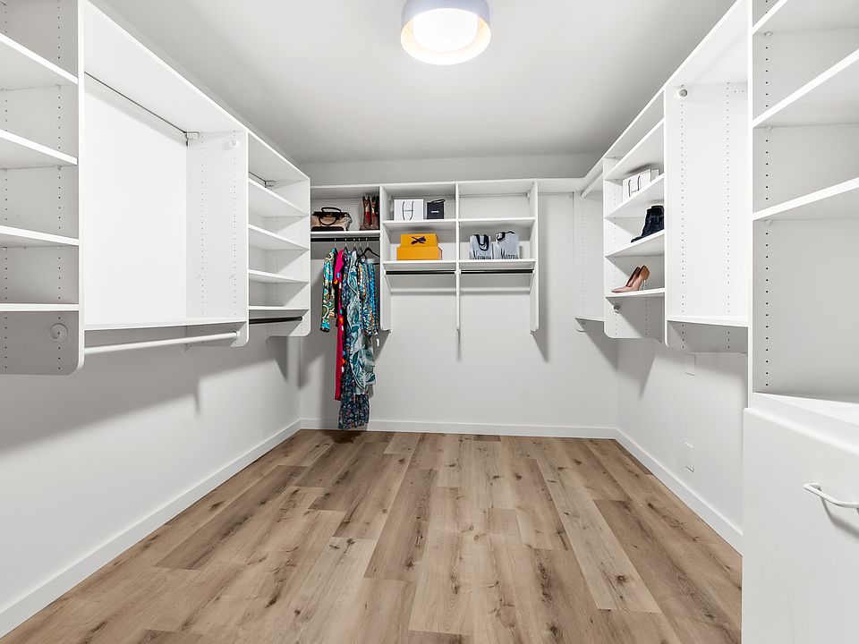 The elegant primary suite offers a true retreat, featuring a luxurious spa-style bathroom, cozy fireplace, private coffee bar with mini fridge, a personal gym, and a private balcony overlooking the property. Each bedroom includes an expansive walk-in closet, providing both comfort and style.