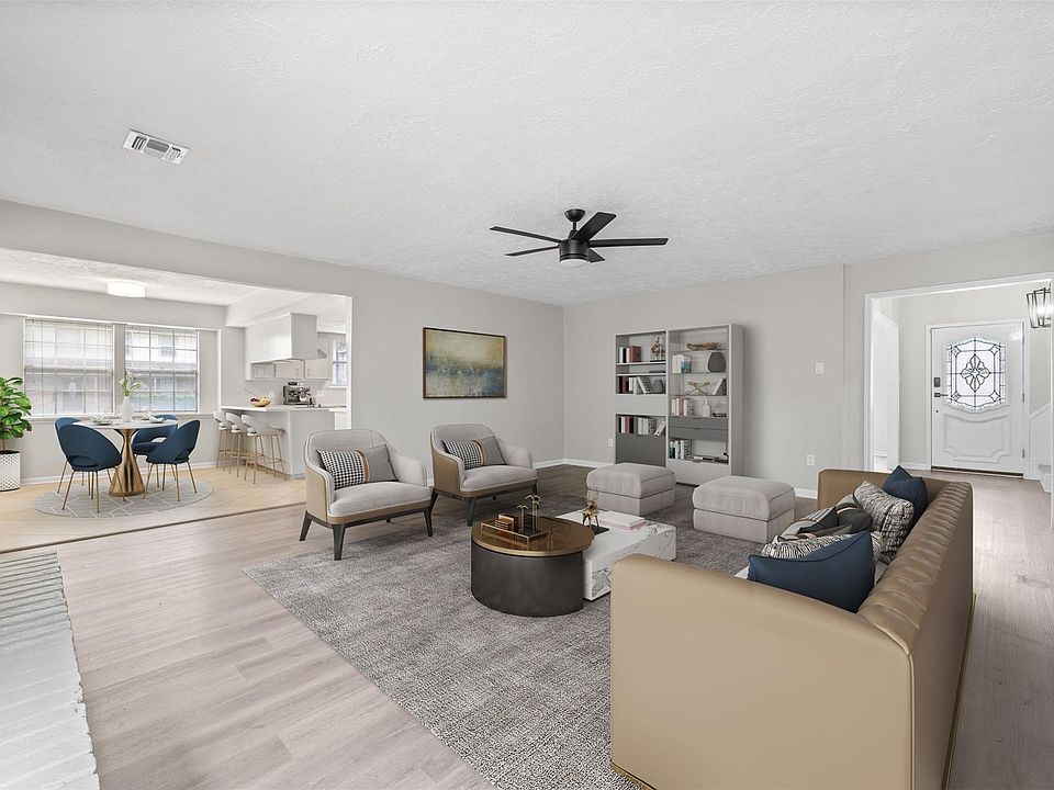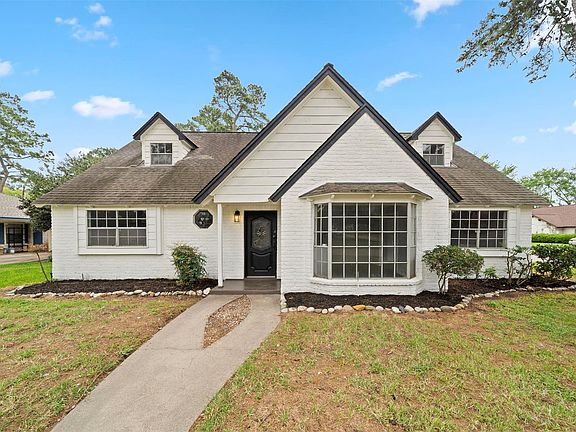 Beautifully renovated 2-story home on a corner lot, boasting a freshly painted exterior, mature trees, full interior paint, new wood type flooring throughout, updated fixtures, fully refreshed baths, new countertops, and an amazing sunroom! This floorplan is great for entertaining with a versatile formal living, formal dining, den with a fireplace, utility room with built-ins, breakfast room, and upgraded kitchen with new stainless steel appliances. Also downstairs, the primary suite offers dual sinks, a jetted tub/shower, and dual closets while upstairs holds the secondary bedrooms and full bath. Enjoy the backyard space with a patio and separate gazebo! Located with proximity to FM 1960, Hwy 249, I-45, Bush Airport, Vintage Park, shopping, dining, and multiple parks!