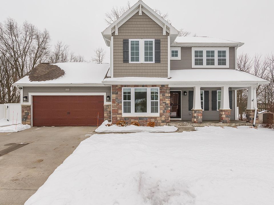 Stunning newer home in immaculate condition! This pottery barn style home features an abundance of upgrades throughout! Gorgeous wood floors on main level. Main flr den w/ French doors, crown molding, & wainscoting. If you like to entertain you'll love the gourmet kitchen with beautiful cabinetry, granite counters, SS appl, center island w/ snack bar & tile backsplash. Open great room with gas frpl and built in book shelves plus great view of the private backyard. Formal DR with access to back deck/patio/fire pit. 2nd floor level is highlighted by 3 bedrooms, 2 full baths, laundry, & loft/potential 4th bd. Private master includes double vanity, garden tub, tile shower, & walk in closet. Full basement with great work bench area and potential for future living space. Extra wide driveway.