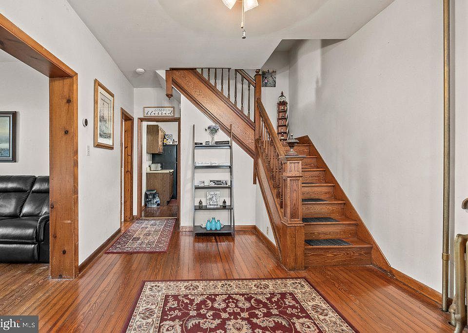 Finished back porchIncredible staircaseGorgeous textured glassOversized bathroomBeautiful hardwood floorsOversized corner lotLarge enclosed porch