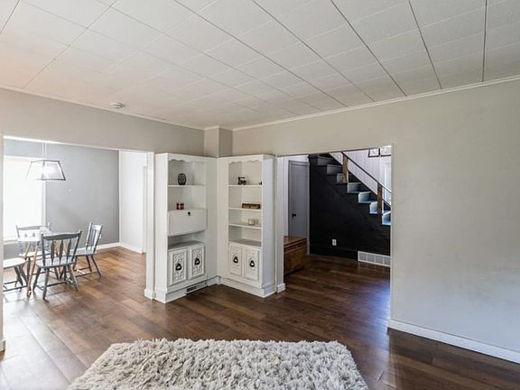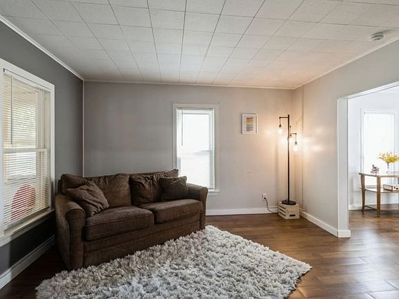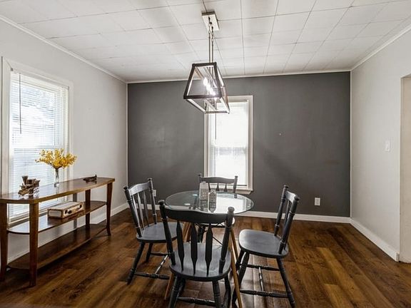 Come experience this clean, affordable 2 story with 3 bedrooms and full bath on the upper level. The main level has a nice size living room, formal dining room, kitchen and cute front porch. It has an extra bonus 1/2 bath and laundry on the back of the home right off the kitchen. Step out back to a cement patio and a 2 car+ detached garage with alley access. Home has newer vinyl windows. This home is close to everything and easy access to 35/80.