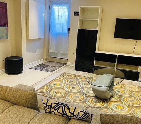 Legal Basement One Bedrm Apartment In A Corner Detached House, Sunny, Furnished, Gloss White Ikea Kitchen W/European Appliances, Great For Professionals Or Yonge Family, Furnished Bedrm W/ Closet, Large Bathrm W/Walk In Shower And Glass Door, Pot Lights, Living Furnished W/Sofas , Ceramic And Laminate Flooring