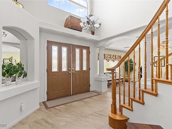 Beautifully maintained 6-bedroom home with a rare basement in the Northwest! This spacious floor plan offers one bedroom and full bath downstairs, a welcoming bar area, and two fireplaces—one in the family room and one in the primary suite. The primary retreat also features a balcony with west-facing views to enjoy stunning sunsets. Recent updates include a newer water heater (2022), two new A/C units (2022), and new carpet (2023). Outdoor living shines with RV parking, a 3-car garage, storage shed, covered patio, and a gorgeous, meticulously cared-for garden. With NO HOA and no deferred maintenance, this home has been lovingly cared for and offers the perfect combination of comfort, character, and functionality. Truly a unique find in Las Vegas!