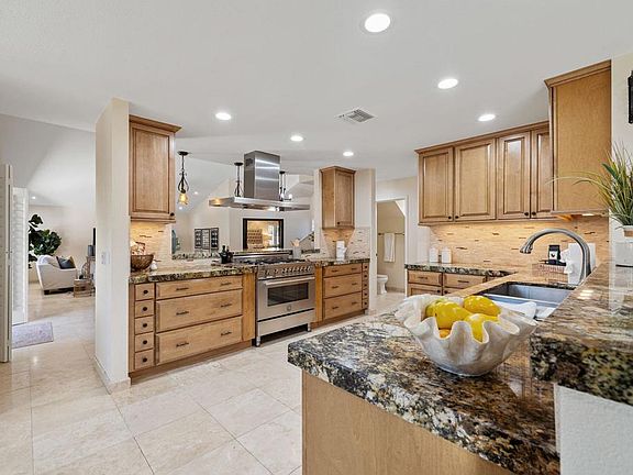 This amazing 3 Bedroom, 3.5 bath home is all about luxury and privacy in a resort style setting. The home has been remodeled with an open kitchen and floor plan with a main floor primary suite and a second floor oversized suite. The open and spacious feel shows fantastic upgrades with marble tile floors, baseboards, granite slab counter tops, custom cabinets, stainless steel appliances, a walk-in pantry all opening to the living room as well as the dining and family room. The kitchen has an eat-in dining area plus breakfast counter bar and has a built-in stone fireplace. The living room has cathedral ceilings, and sliding doors opening to a large backyard complete with a huge private salt water pool, spa, fire pit, built- in barbecue, and side yard with turf. The main level master suite has a large gas fireplace, stone flooring, and private bath with split vanities, walk-in shower with multiple shower heads and sprays. The second floor has two en suites with walk-in showers and jetted bathtub, back-lit onyx waterfall sink, and bamboo flooring, with sliding glass doors opening to a huge private west facing deck overlooking the pool, spa, BBQ and mountain views. You also have the ultimate bonus of a 3 car garage and PAID SOLAR! Home is virtually staged.