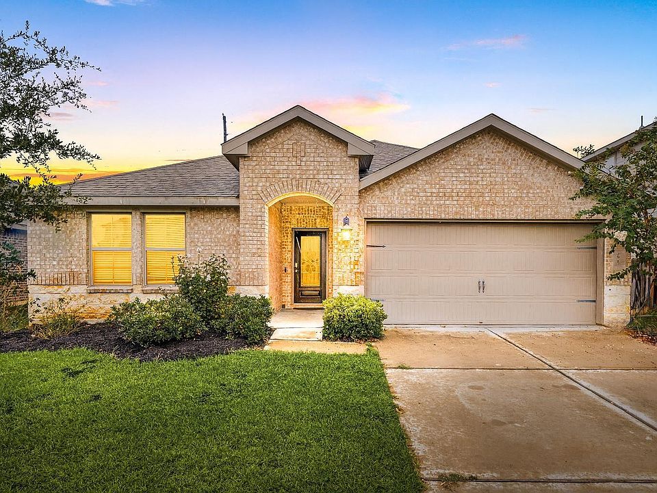 Beautiful 1-story home in the sought-after Parks Edge community! Built in 2020, this 4-bedroom, 2-bath residence welcomes you with a formal dining area that opens to a bright family room filled with natural light. The chef’s kitchen boasts granite countertops, subway tile backsplash, stainless steel appliances, a large island, and walk-in pantry—ideal for both daily living and entertaining. The private primary suite offers dual vanities, a glass-enclosed shower, and walk-in closet. Three secondary bedrooms provide space for family, guests, or a home office. Enjoy the fully fenced backyard with covered patio, brick pillars, paved section, grassy lawn, and garden bed—perfect for outdoor activities. Parks Edge features a clubhouse, pool, splash pad, playground, and lakeside trails. Easy access to Fort Bend Tollway and Hwy 6, plus nearby shopping, dining, and highly rated Fort Bend ISD schools.