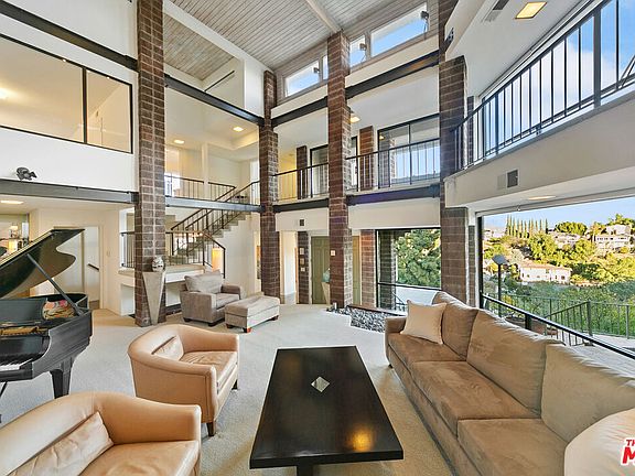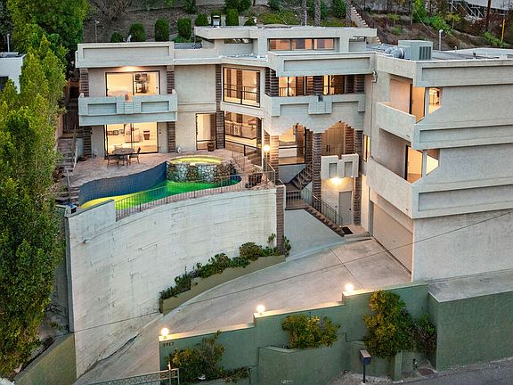 Experience the uniqueness of this architecturally distinctive residence situated in the heart of Sherman Oaks south of the Boulevard. The home has gorgeous views from every room. This inviting multi-story home commands attention from the moment you step inside, with a grand two-story living room adorned with a floor to ceiling brick fireplace surround and a sophisticated bar nook, perfect for hosting elegant soirees. The separate bonus/media room beckons for cinematic experiences and social gatherings in the comfort of your own home. This room is located adjacent to the pool access which makes it versatile for entertaining. The property features three bedrooms with two and a half generously sized bathrooms. The primary bedroom boasts a balcony with outstanding views. Additionally, a spacious room, currently used as a home office, provides the flexibility to accommodate various lifestyle needs or serve as a fourth sleeping area if needed. The gourmet kitchen, equipped with state-of-the-art appliances and expansive counter space with a stainless steel center island, effortlessly flows into a cozy breakfast nook. The formal dining room offers breathtaking panoramic vistas from the valley to the mountains through the corner windows as well as a balcony. Step outside to your private sanctuary, complete with a pristine pool and spa that offers awe-inspiring views, ideal for relaxation and leisure. Meander to the top of the property for a glass of wine at your secluded table for a breathtaking view of the world below. Note the convenient large storage room next to the ample two car garage. Nestled in a vibrant neighborhood with top-tier schools, picturesque parks, and premier shopping centers, this home transcends mere living. It promises and delivers an elevated lifestyle. Do not miss the opportunity to own this extraordinary Sherman Oaks custom residence.