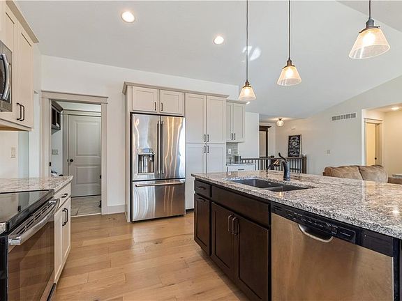 This beautiful open concept Ranch home has it all! The kitchen is a stunner with granite countertops, soft close cabinets, SS appliances, and gorgeous fixtures. The hidden walk-in pantry will conveniently store all those extra appliances. Cozy up near the gas fireplace in the winter or enjoy summers under the covered deck! The master bedroom with en suite offers a beautifully tiled shower, dual sinks, toilet room, and a huge walk-in closet. 2 more main floor bedrooms share a Jack & Jill bathroom. The mudroom off the 3 car garage provides laundry and a drop zone. Rounding out the main floor is a ½ bath for your guests. The finished lower level walkout is huge! In addition to plenty of storage, there is a 2nd living room with wet bar, a bedroom and full bathroom. The slider leads you to a fully fenced in backyard with plenty of space to spread out. The large windows throughout the home let in tons of natural light! All information obtained from Seller and public records.