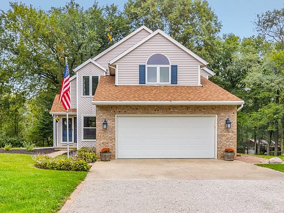 Welcome home! This home has stunning views from every room. Situated on 6 acres with an outbuilding to store your extra toys. Nicely landscaped large front and backyard. The living room with vaulted ceilings features 2 floor to ceiling windows letting the natural light pour in. Large kitchen with informal dining room and a coffee or wine bar area. Stainless appliances stay, granite countertops, island with seating, pantry and more amazing views. Upstairs features the 3 bedrooms and main full bath. Large master suite with attached full bath and walk in closet. In the partially finished basement you get another family living space, a room currently used as a hunting room, a finished storage room, and a room with the mechanicals and unfinished storage. Your lot is just over 6 acres with woods to hunt in! Get out your bow for some deer and turkey.
