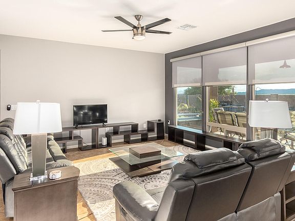 Amazing opportunity to own a ''Timothy'' home in Eagle Crest Ranch. Offering wonderful curb appeal with beautiful desert landscape and fabulous mountain views. Come inside to discover vaulted ceilings, floor to ceiling windows and designer touches throughout! The spacious great room with natural lighting and neutral palette is sure to impress. Gourmet kitchen showcases modern cabinetry, with crown molding, granite countertops, SS appliances, large walk-in pantry, & an expansive island with breakfast bar. A chef's dream with double oven & gas range! The primary retreat boasts soft carpet & an ensuite with dual sinks & large walk-in closet. The expansive backyard is an entertainer's dream! Enjoy the relaxing covered patio, built-in BBQ, pergola with fire pit, and desert landscape. The sparkling heated pool is perfect for entertaining. Offering a stunning water feature, salt water, and travertine deck. The mature palms and Nopal with Catalina Mountain Views creates the perfect backyard oasis!