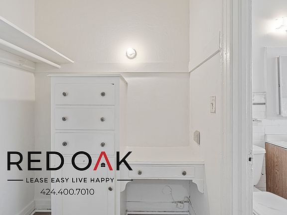 ~$100 OFF Each Month~ Stunning Studio with Generous Storage, Eat-In Kitchen with Appliances, All Utilities Included, and On-Site Laundry ~ In the Heart of L.A.! *MOVE-IN SPECIAL* **Don't Miss this MOVE-IN SPECIAL of $100 OFF the market rent price of $1399 each month for the 12-Month Lease, on approved credit. The listing price reflects this special. * Unique Features: Timeless Appeal: Set in a charming, historic building with sunlit interiors and classic architectural details. Naturally Bright: Large windows flood the home with natural light, complementing the hardwood-style flooring and cozy layout. Comfort Year-Round: Baseboard heating and ceiling fans ensure an ideal indoor climate. Organized Living: Enjoy an expansive shallow closet with two doors, plus a fabulous walk-in storage area near the bath with custom built-ins, to suit all your organizational needs. Charming Kitchen: Complete with essential appliances, sleek countertops, a lovely tile backsplash, hardwood cabinetry, and a sunny dining nook. Stylish Bathroom: Relax in a soaking tub with a shower head, complemented by a hardwood vanity and a bright, well-lit mirror. Effortless Laundry: On-site facilities provide everyday convenience. Utilities Included: Enjoy worry-free living with all utilities covered in your rent. Prime Location: Centrally located in LA, offering easy access to freeways, parks, and top cultural destinations. This one won't be on the market very long! Available for an immediate move-in. LEASE TERMS: 1 Year Lease Pictures and descriptions are of EXACT unit Square Footage is approximate. Showings may not be 1-on-1. All information must be validated on Red Oaks Website since 3rd party websites can feed incorrect information