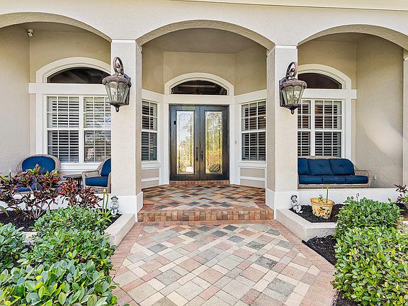 Wildlife sanctuary in Palm City's gated Windstone. Overlooking tranquil Lake Rush from artfully tiled veranda, this luxurious 4 br/4 ba home includes upgraded amenities: impeccable kitchen, soft-close cabinets, LG appliances, & reverse-osmosis system; plantation shutters; living areas open to captivating screened lanai (2020) w/ waterfall pool/spa; fully-fenced property & private access to C-23 canal (miles of hiking, views, fish); updated internet/sound, & security systems; owner ensuite has slipper tub, walk-in closets, pool access; private junior ensuite sports canal views; coffered office w/ built-ins; wood-burning fireplace; replaced roof (2020); irrigated lush landscape; low HOA; close to 95&TP & services; A-rated schools; & full quick-prep hurricane shutters make this move-in ready.