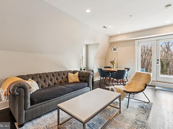 Built in 2015, this contemporary two bedroom, two full bath penthouse boasts high ceilings, architectural walls, recessed lighting, and an open plan with gorgeous hardwood floors throughout. The spacious layout is enhanced by an abundance of windows and a beautiful skylight in the hallway, filling the home with natural light. The primary bedroom's closet is large enough for your wardrobe and additional personal items. The guest room/office boasts a secondary very large closet and access to the large outdoor deck. For added convenience and privacy, a full sized washer/dryer are located inside the unit. The generously sized living room opens to a massive private deck with serene, unobstructed views of Whitehaven Park, perfect for outdoor relaxation. Additional features include, deeded parking and a low condo fee that covers water, garbage, gas, and landscaping. There are excellent transportation options. The neighborhood has dog parks, trails, retail, and restaurants - with Georgetown and downtown DC just minutes away.