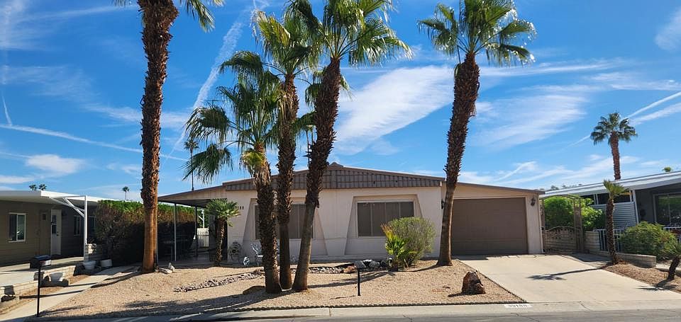 Located in a prime setting with impressive mountain vistas, this well-appointed 2-bedroom, 2-bathroom residence features comfortable living areas suitable for those who enjoy entertaining. While some updates may enhance the home, it presents an excellent investment opportunity for buyers seeking to customize their own retreat. The property affords both privacy and convenient access to the Clubhouse and amenities such as pools, golf course, and all offerings at Palm Desert Greens Country Club. Residents benefit from a fully equipped fitness center and a variety of social activities within this dynamic 55+ community. You OWN the LAND, and the low $400 monthly HOA fee provides 24/7 guard-gated security, cable, internet, trash service, and FREE GOLF! Palm Desert Green Country Club is centrally located in the Coachella Valley with easy access to major attractions, Casinos, Concerts, Disney's new Cotino development, as well as the upscale shopping and dining of El Paseo. This property represents outstanding value in a sought-after location. Come check this property out and envision the endless possibilities!