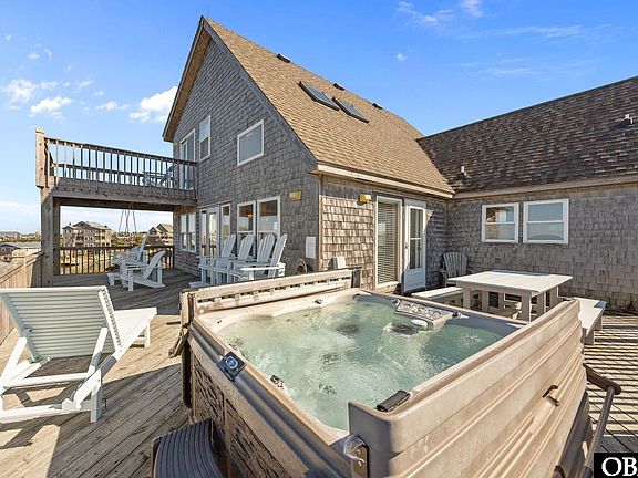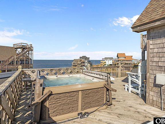 "Pamlico Sails" offers exceptional views of the sound and canals in Avon and is ideal for water sport enthusiasts! The boat ramp allows easy access by boat, kayak and stand up paddleboards where you can cruise the canals and explore the Pamlico Sound and beyond. The lower level welcomes guests with a spacious family room that includes a wet bar and full sized refrigerator, in addition to a full bath and laundry area. The second level includes three queen bedroom suites with adjoining bathrooms, one of which is also accessible from the hallway. A bonus bunk room is also found on this level, though the septic capacity is just for 4 bedrooms and you'll find another primary suite on the top level. The third floor's vaulted great room includes skylights and upper windows and offers multiple dining and seating areas, a gas fireplace, and a good sized kitchen with center island seating. The primary suite on the top level offers a private space with a jetted tub, its own deck overlooking the sound, as well as a full bath with dual vanities. Decks wrap around two sides on two levels for plenty of outdoor living areas with divine views. Of course, there is an outdoor shower and storage space for your water toys at Pamlico Sails too.