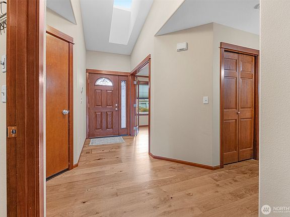 Welcome to this beautifully maintained great room rambler on a private Mill Creek cul-de-sac. Enjoy laminated hardwood floors, vaulted ceilings, a gas fireplace, & glass doors to a serene patio. The well-designed kitchen & living areas flow seamlessly, while French doors open to a versatile den ideal for a home office or retreat. The primary en suite offers a soaking tub, separate shower, & dual sinks, plus two additional bedrooms for guests or hobbies. The landscaped yard & spacious deck are perfect for relaxing or entertaining. Enjoy year-round comfort with a brand-new gas furnace, sprinkler system, air conditioning, & the efficiency of natural gas. This charming rambler has outstanding curb appeal & is the perfect place to call home.