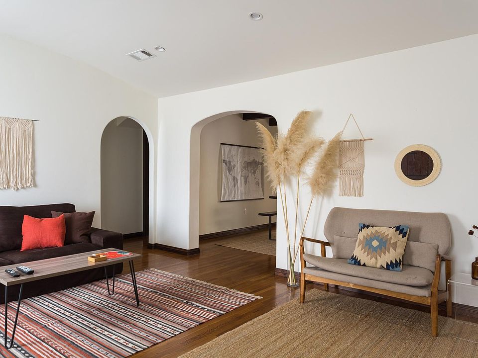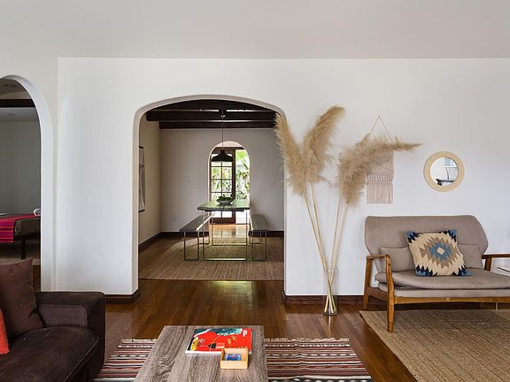 Beautifully upgraded charmer home in the West Adams District. Home reflects Spanish character with arched ceilings and dark wood accents. Freshly painted to hold its warm neutral pallet. Large living room is appointed with brick fireplace, recessed lighting and hardwood floors that span the entire home along with central air. Dining area has accented wood beams with French double doors that lead into the backyard. Updated kitchen with quality dark wood cabinets, granite counter tops and chrome fixtures. Master has walk in closet with custom wood built-ins. Other bedroom also has built in closet perfect for organizing. Stunning upgraded bathroom with mosaic tile, full bathtub and separate shower. Parts of attic have been refinished. Huge backyard offers papaya, banana, and lemon trees with lots of greenery perfect for entertaining. Home close is close to USC, Culver City, new restaurants, and just a few blocks from the Expo and new Crenshaw light rail Metro trains.