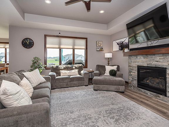 Discover refined comfort and exceptional design in this beautifully crafted ranch-style home. From the moment you arrive, you'll notice the warmth of the open layout, highlighted by custom cabinetry and details throughout. The main level offers seamless everyday living with three spacious bedrooms, including a luxurious primary suite featuring heated tile floors, a spacious tiled shower, and an oversized walk-in closet. The kitchen is both beautiful and functional—complete with quartz countertops, abundant cabinetry, a pantry, and direct access to a deck that's perfect for morning coffee or unwinding in the evening. Just off the oversized 3-stall heated garage, you'll find a convenient mudroom with half bath and main floor laundry featuring a custom dog run extending from the laundry area through the garage into the yard —making daily routines a breeze. Downstairs, the walk-out lower level expands your living space with a large family room, wet bar with heated tile floors, two additional bedrooms, and a full bathroom—ideal for guests or entertaining. Enjoy the outdoors in your fully fenced backyard with a spacious patio, mature trees and a storage shed for all your extras. Epoxy floors, hot/cold water, and a floor drain in the garage add practical value for North Dakota living. This home is more than just a place to live—it's a lifestyle of comfort, quality, and convenience. Schedule your showing today and experience all this home has to offer.
