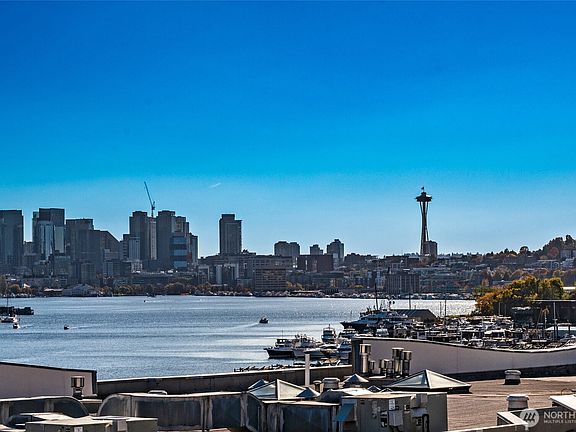Watch Fourth of July fireworks and Duck Dodge, along with every day phenomenal lake and city views from the spacious deck and wall of windows gracing the open concept living, dining, kitchen! Super convenient...minutes to downtown, steps to Burke Gilman and a short walk to multiple eating/drinking establishments. Kitchen boasts granite counters, Stainless steel appliances and bar seating. Full size in-unit W/D. Main bedroom has walk-in closet and ample attached bath. Secure garage with TWO assigned parking spaces. Great sized complex--only 27units.
