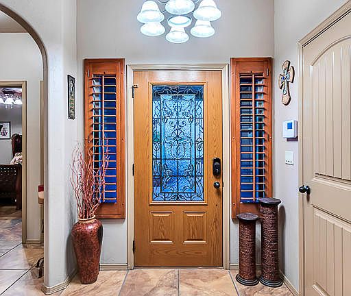 Beautiful home nested on the edge of the gorgeous South Valley. It's a spacious 3 bedroom, 2 bathroom at 1694 sq/ft with a 2 car garage. It boast high ceilings, fireplace, title throughout as you walk thru the entry arch way with custom carved wood pillars into an open, spacious floor plan. Granite counter tops throughout including the kitchen island breakfast bar accented by the the custom cabinets. Kitchen also includes pantry and skylight with dinning room. Master bath features double sinks, with jetted tub to relax in after a long day! For your outdoor enjoyment and entertainment your covered patio features tile counter/breakfast bar and grilling area complemented by grass yard and trees for fun and play.