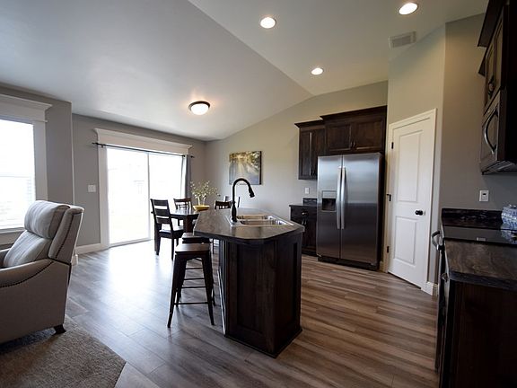 This immaculate home includes 3 bedrooms and 2 baths and looks better than new! The vaulted entry and laminate hardwood floors give this home a clean modern feel. Entering the home you will feel at home with the roomy kitchen, stainless steel appliances, and an island overlooking the dining and living rooms. The dark custom cabinets and beautiful flooring are stunning in this home. Located on the opposite side of the home from the kitchen is two bedrooms, a full bath with tile floors, a laundry room, and the large master suite with vaulted ceilings, a walk-in closet and a master bathroom. The unfinished basement is ready for you to finish to add up to 3 more bedrooms, a family room, storage/mechanical room and a full bath. Subtle features like vaulted ceilings, custom molding, recessed lighting and a modern layout make this home stand-out. Don't miss this great home in the wonderful Red Rock Estates!